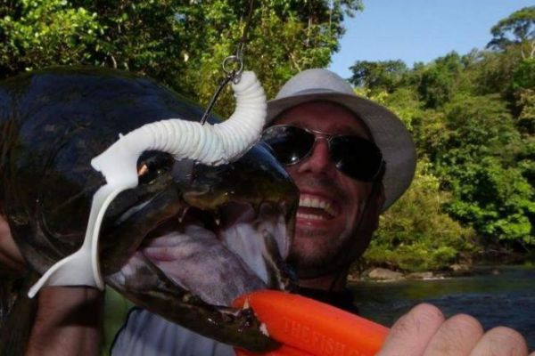 While some of the fishing in the most crowded spots is done by pirogue, fishing from the shore is also feasible, notably by scrambling over the sometimes slippery stones of the jumps, or by fishing under the rod in the heart of drowned trees. A technique that works particularly well in this configuration is to strike your soft lure several times on the surface of the water to arouse the curiosity and aggressiveness of the aïmara and then let it sink. On the retrieve, a powerful strike is recommended and, above all, there's no room for finesse - you need to bridle as hard as you can!