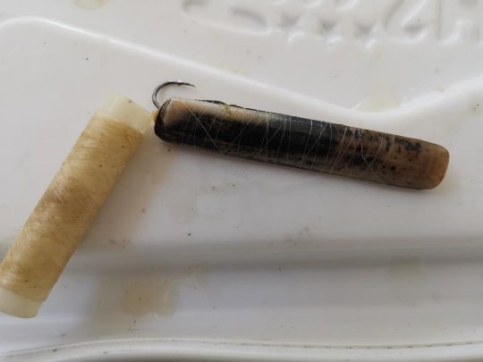 The knife can be used without the shell, in which case it is eschewed like a worm using a hollow needle, then wound with elastic thread for a better hold.