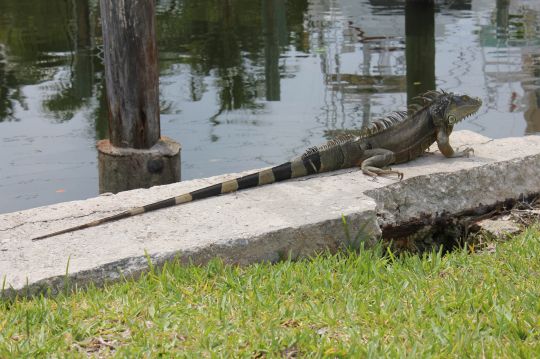 Alligators are a common sight in Miami. It's common to come across them at the water's edge, and there are signs everywhere to remind us of this. They hide very well in the tall grass, and don't be fooled into thinking that there are only small ones in town. The danger certainly lies in lowering our guard, as we don't expect to find such an animal in town.