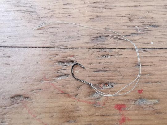 Make a braided stack to which you connect your size 6 (or 8) hook. A simple loop of about ten centimetres is sufficient.