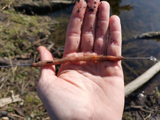 - Start by sliding the worm onto the needle (if your worms are too small, you can use several).