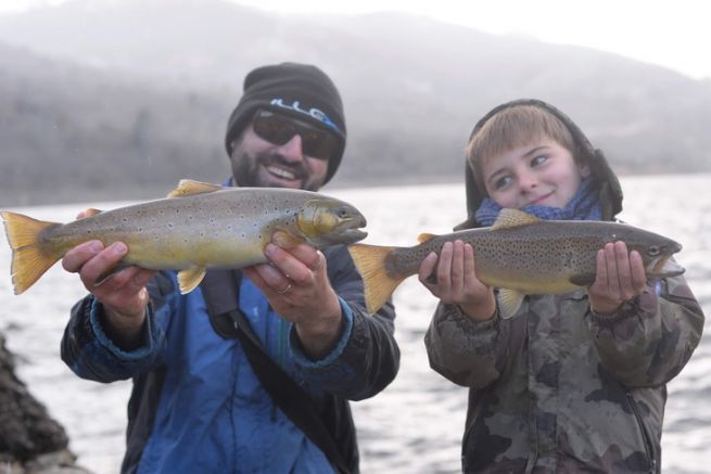 We take the time for a coffee break to warm up and face the rest of the morning, which looks very windy. My son Marc, who joined us with Agathe and Milo, goes fishing with confidence. His application and his abnegation pay off since he catches his first fario of the lake. A fish of 46 cm on a Gunki Gamera 83HW. When we think that he is only 6 years old, I let you imagine the joy and the pride of the father! What a moment!