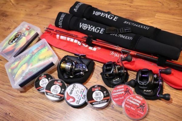 Hooks are not allowed in the cabin, so lures must be carried in the checked luggage. To maximize space, I use large boxes rather than lots of small ones.