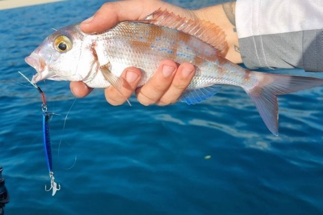 Light jigging is practiced with jigs from 10 to 80 grams depending on the depth and the targeted species. All species of sparidae can be caught with jigs, from sar to gilthead bream, including the pike-perch and the denture . The areas to look for are preferably rocky for the dentis or rather sandy for the pagres and pageots.
