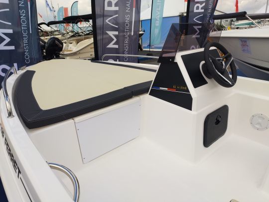 Built in Bordeaux by B2 Marine, the 135 Fishing boasts a 100% French positioning. With a hull length of 4.52 m, a beam of 1.92 m, a weight of 400 kg (excluding engine) and an engine capacity of up to 40 hp, the 135 Fishing is the perfect choice for the French market. Its buoyancy is ensured by integrated reserves, enabling it to boast CE C5/D5 category approval.