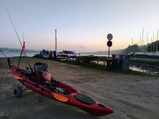 On this Monday, October 13, the kayak took to the water. As it's still a bit windy, I switched the float to a motor version. This kayak can be fitted with a variety of propulsion systems. A pedal propeller, a stepper (with blades) or a steppe well motor. So it was in this version that I rigged my kayak for this session.