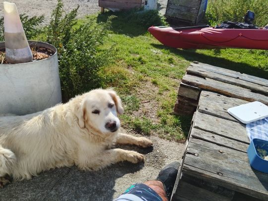 I'll be sharing a snack with a surprise guest. A four-legged companion will give me the look of a beaten dog, he enjoyed my mortadella salad...
