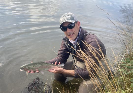 The trout are milling around the lake. With the sun shining so brightly, it's easy to spot them. In this reservoir, as in others, the fish like to be in groups, large and small. The competition for food that they have experienced in their tank makes them aggressive, and if you manage to intercept their movements, or land delicately close to the shoal, it's not uncommon to catch several fish.