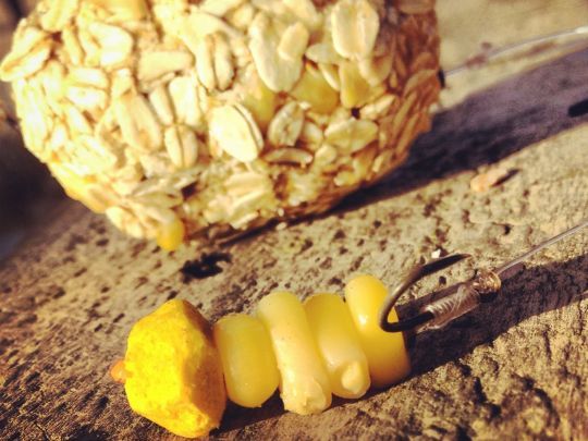 As far as bait is concerned, we're into extreme simplicity: breadcrumbs and sweetcorn are the essentials. Fish are far from educated, so the latter remains the safe bet. A few kernels of floating corn are always welcome to adapt the presentation of baits. They don't take up much space and can save lives. If I need to bait more massively, or if I want to fish at a distance that doesn't allow me to send the seeds by hand, I go back to my recipe from Canada: oat flakes, sweet corn and creamed corn to make the binder. A ball on the lead and vamos!
