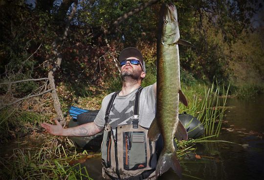 The answer to my main question, whether muskellunge inhabit the area, is not long in coming. Indeed, when passing close to a weed bed, a muskellunge starts following the lure, and a "stop and go" is enough to make it attack.