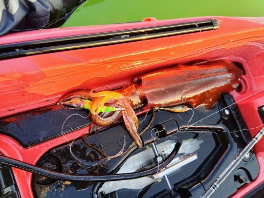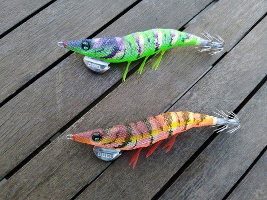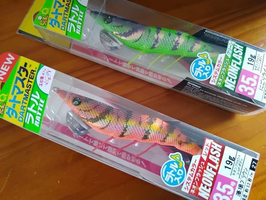 The EZ-Q Dartmaster Rattle are jigs with a beautiful finish. I was able to do a session this morning and the conditions were ebb tide with a coefficient of 98. With the rain of the last few days, the water was green and turbid. I started my session with my usual Tataki rig. Only one cuttlefish in almost an hour of fishing. I then replaced my bottom jig with this green Dartmaster, fast animation by tapping the lead on the bottom and jerking several times to make the noisy balls jingle. Several squid, including some pretty ones, and two cuttlefish came to bite during the next hour.