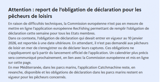 COPERE takes note of the official postponement of the obligation to declare recreational sea anglers via the European RecFishing application, announced as compulsory from January 10, 2026. After months of communication, publicly-funded campaigns and pressure exerted on recreational anglers, the administration now recognizes the obvious: the tool is not available.