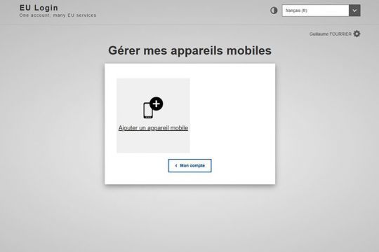 On the EU Login application, click on " Register my device "then " Continue "then " Continue ".