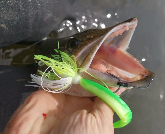 Jerkminnows are also very effective, as are swimbaits, which can trigger numerous attacks by alternating acceleration and brief pauses.