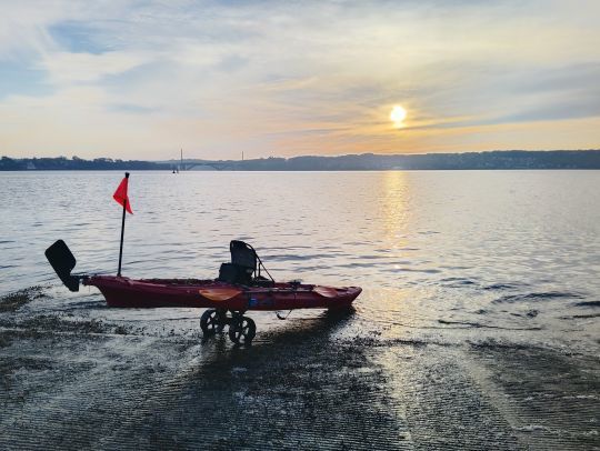 So, on March 3rd, it's 94°, and I'm rigging my kayak with a motor and lithium battery. It's a squally day on the water, but the weather's even better, with a forecast of 16°C. I consulted the health and water control website. The analyses are good and there are no health restrictions on the species I'm after. So I can look for clams, scallops and crabs.