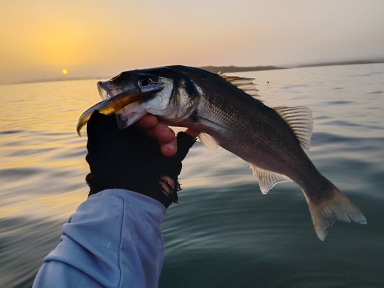 I'll do two more more modest fish, and even a sand eel that can't resist the pearly whites. That's the last fish of the morning, it's past midday and time for a snack break. I return with the wave in the rudder, which goes a lot faster... This outing showed me that I'd still taken too many lures with me. I put a dozen in the water, but only 3 caught fish. I also found that the low coefficients at high tide aren't all that bad. This session showed that on this part of the coast, the sea bass have finished their winter work and are fattening up again, but they don't throw themselves at just anything, so think again...