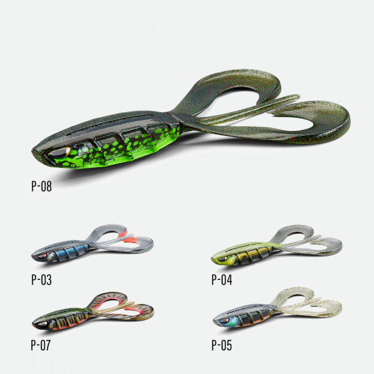 The Nays TWN is a radical softbait for stalking record specimens. Developed in Berlin by Nays, this double grub relies on a massive silhouette to trigger the aggressiveness of fish. Its double-tail design generates strong pressure waves, perceptible from a distance by the lateral line of predators. Its wide silhouette guarantees maximum visibility in rough waters. In terms of specifications, the size 60 boasts 15.2 cm for 34 g, the size 80 offers 20.3 cm for 74 g and the 100 version peaks at 25.4 cm for 142 g. Perfect for use on Texas hooks to fly over weedbeds or on Bim Tackle's new Shallow Cruiser Rig. Each lure features a hand-painted finish in 8 colors, designed without harmful plasticizers.